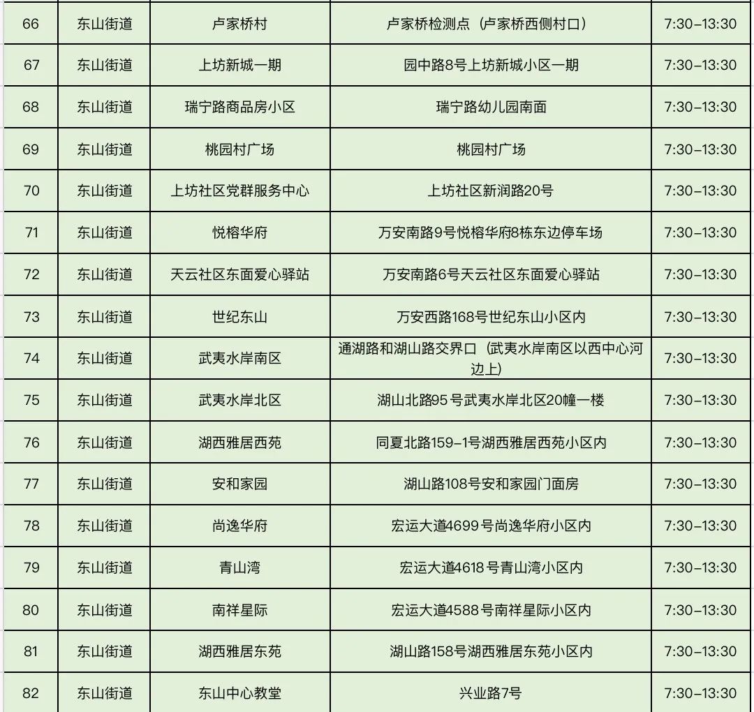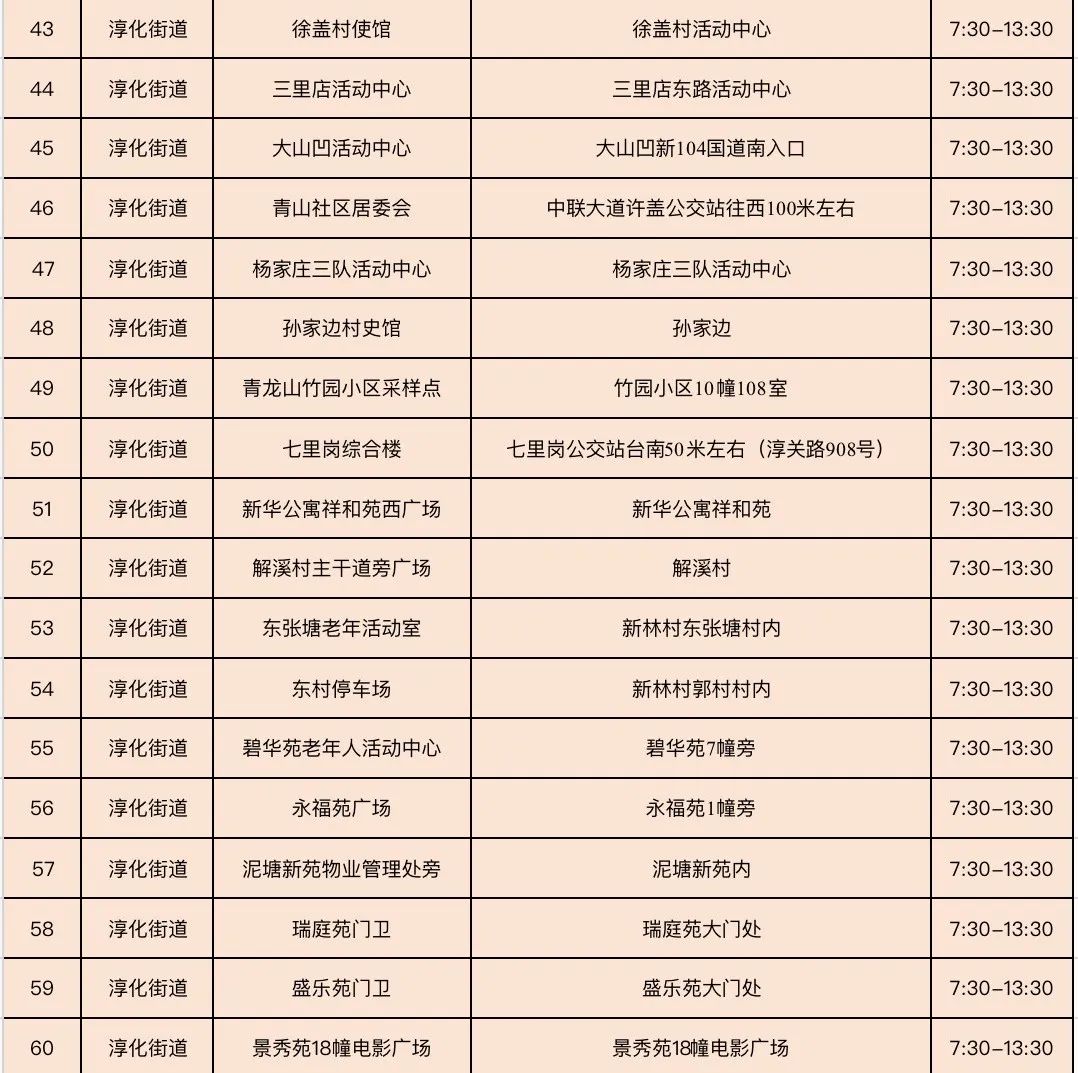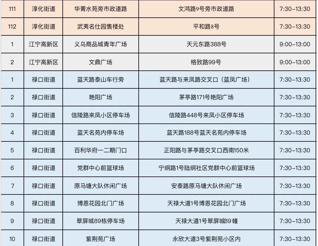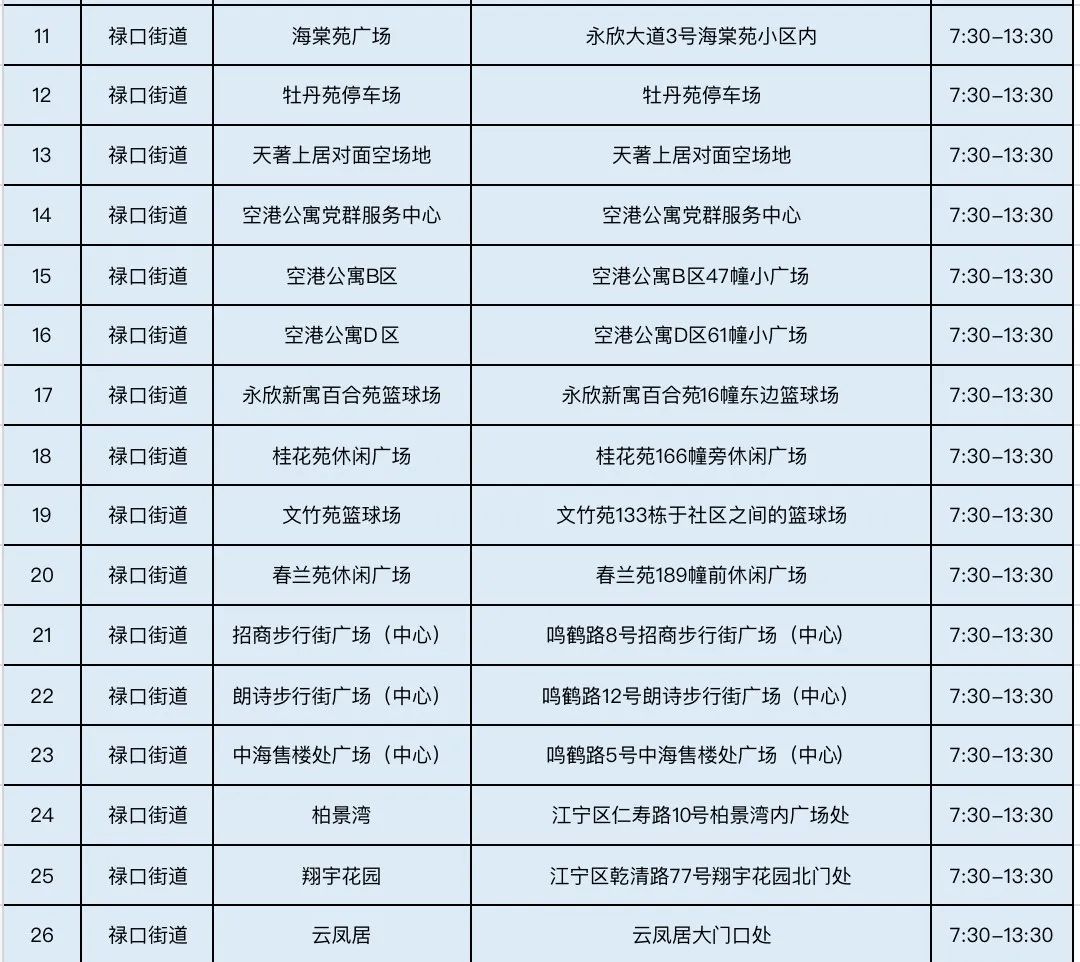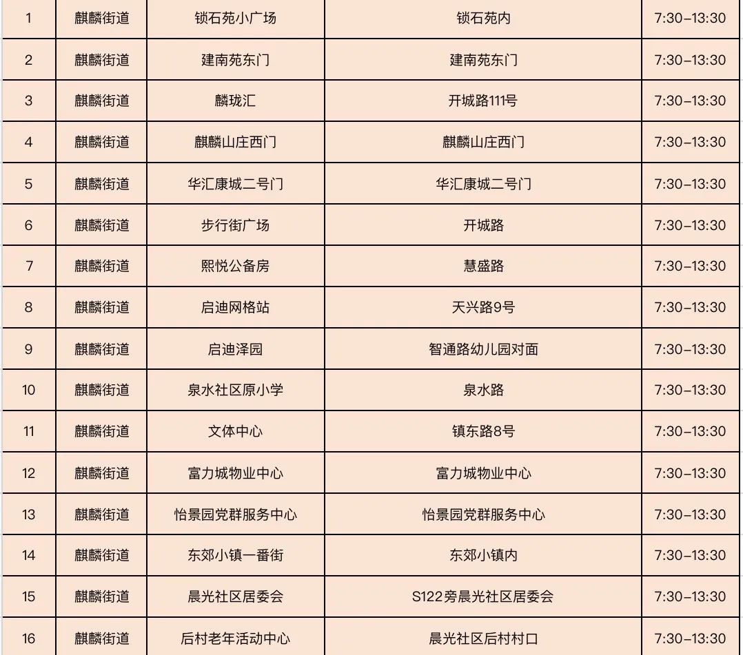 1、请各位居民尤其是近期未检测人员主动配合,按照相关街道园区统一安排,分时段有序前往所在区域采样点进行核酸采样;重点人群、行动不便人群由所在社区安排采样人员上门采样;苏康码黄码人员到指定采样点采样。