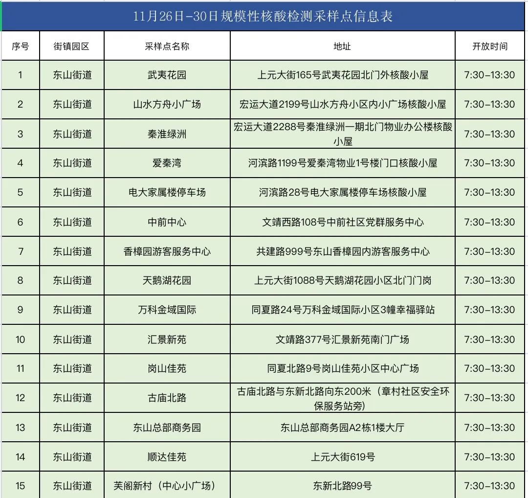为全面摸排疫情防控风险点、快速切断本土疫情传播链,做到“早发现”“早处置”,根据全市统一部署,定于11月26日-30日在全区连续5天每天开展区域性核酸检测,有关事项通告如下: