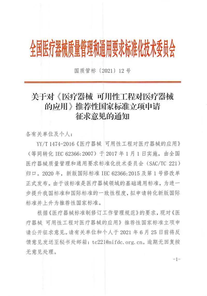 附件1:《医疗器械 可用性工程对医疗器械的应用》项目建议书.pdf