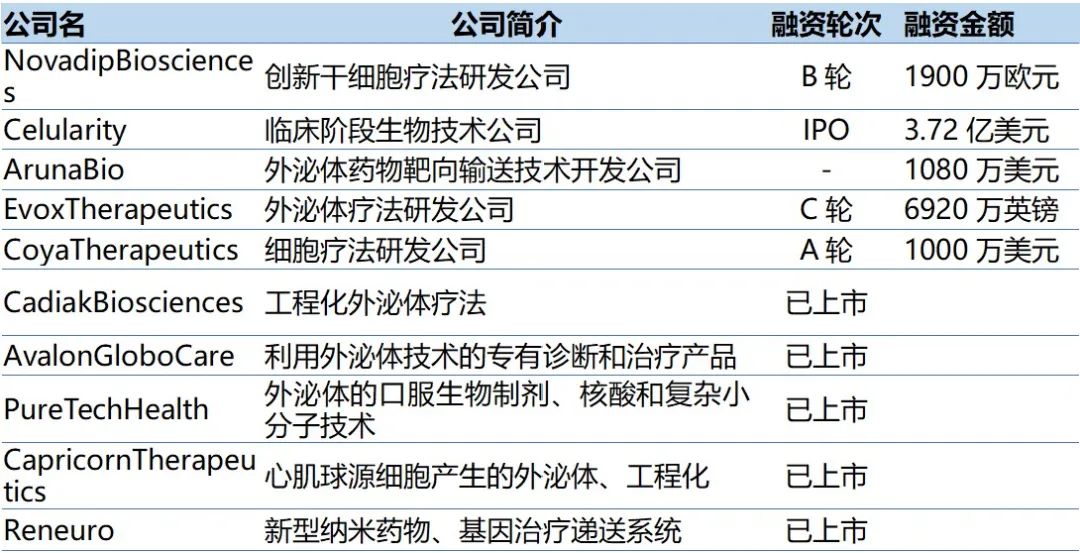 近年来外泌体领域的初创企业数量和规模不断增长,全球有近50家企业“同台竞技”。由于外泌体的标志物并不明确等原因,外泌体诊断领域发展地相对缓慢。大多企业选择布局进展更快的外泌体载药或者外泌体药物开发领域,成功的几率会更大些。