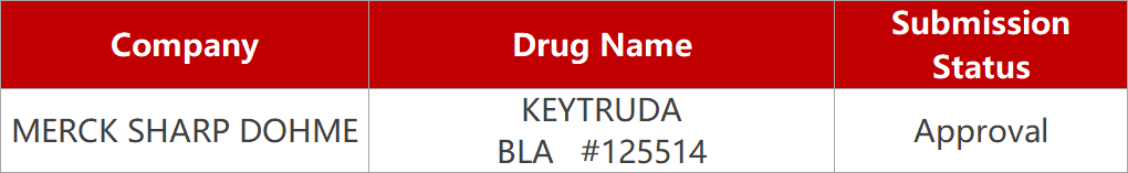 5.默沙东撤回K药在美三线治疗胃癌的加速批准。默沙东宣布撤回FDA此前对Keytruda的一项加速批准,用于治疗PD-L1(CPS≥1)表达、复发性局部晚期或转移性胃或胃食管连接腺癌患者。该决定是在4月29日肿瘤药物咨询委员会对Keytruda作为单一疗法的三线胃癌适应症进行评估后与FDA协商做出的,因为Keytruda未能满足其上市后在一项Ⅲ期研究中证明总生存期获益的要求。
