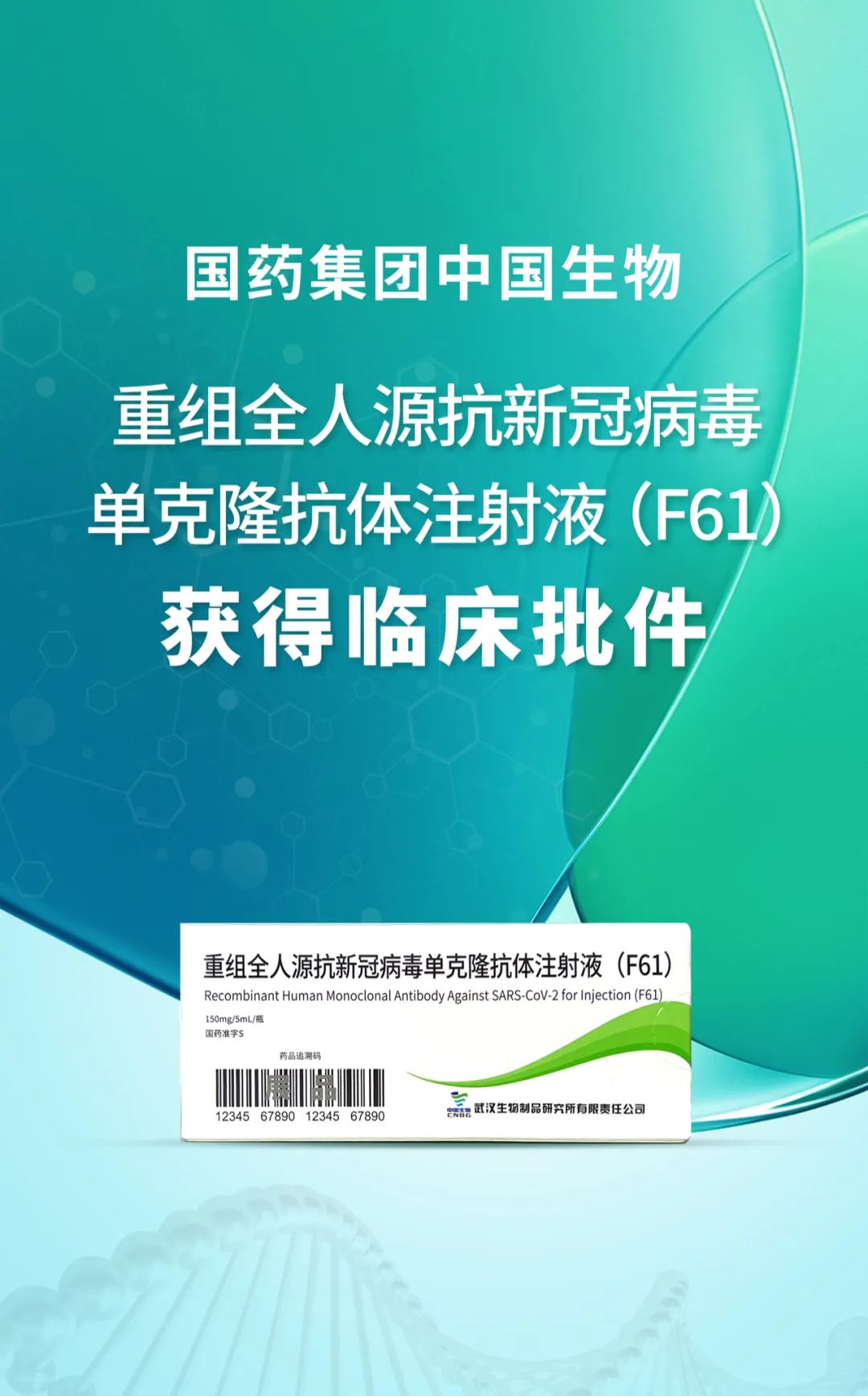 7月26日,国药集团中国生物党委书记朱京津在中国国际消费品博览会中国生物展台前接受媒体采访时带来好消息:近日,中国生物武汉生物制品研究所申报的重组全人源广谱新冠病毒单克隆抗体(以下简称“单抗F61”)获得国家药品监督管理局临床试验批件。