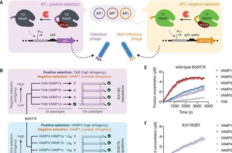 Phage-assisted evolution of botulinum neurotoxin proteases with reprogrammed specificity.
