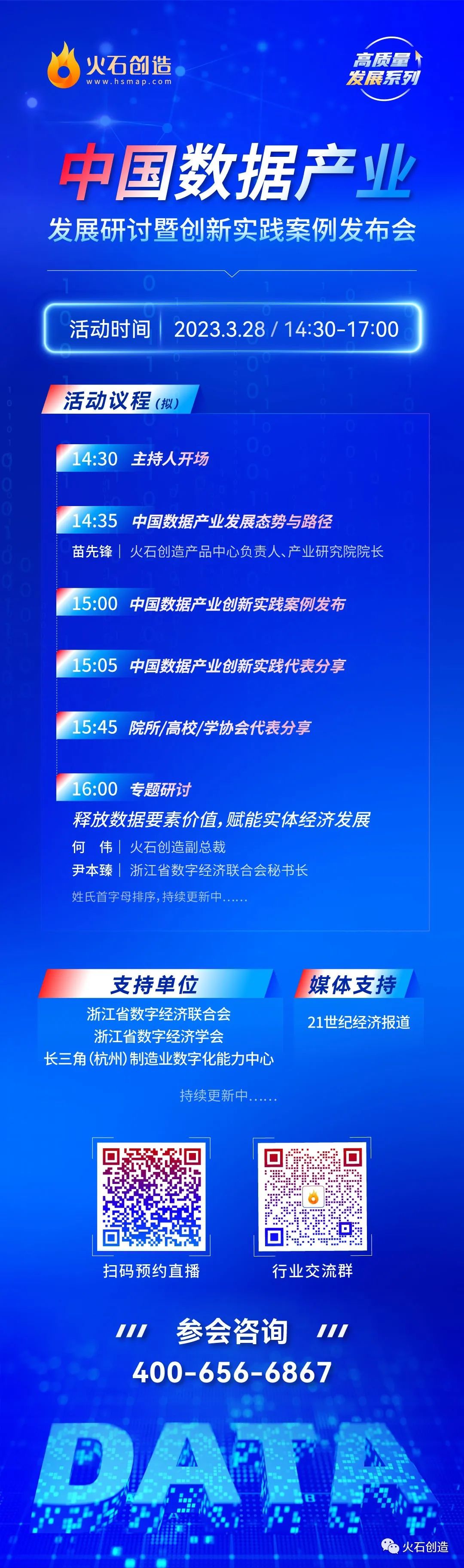 3月28日,现代产业数据智能服务商火石创造将举办中国数据产业发展研讨暨创新实践案例发布会,以数据洞见未来,一起把握数据产业发展新态势,共同探寻发展新路径,促进数据要素市场蓬勃发展!