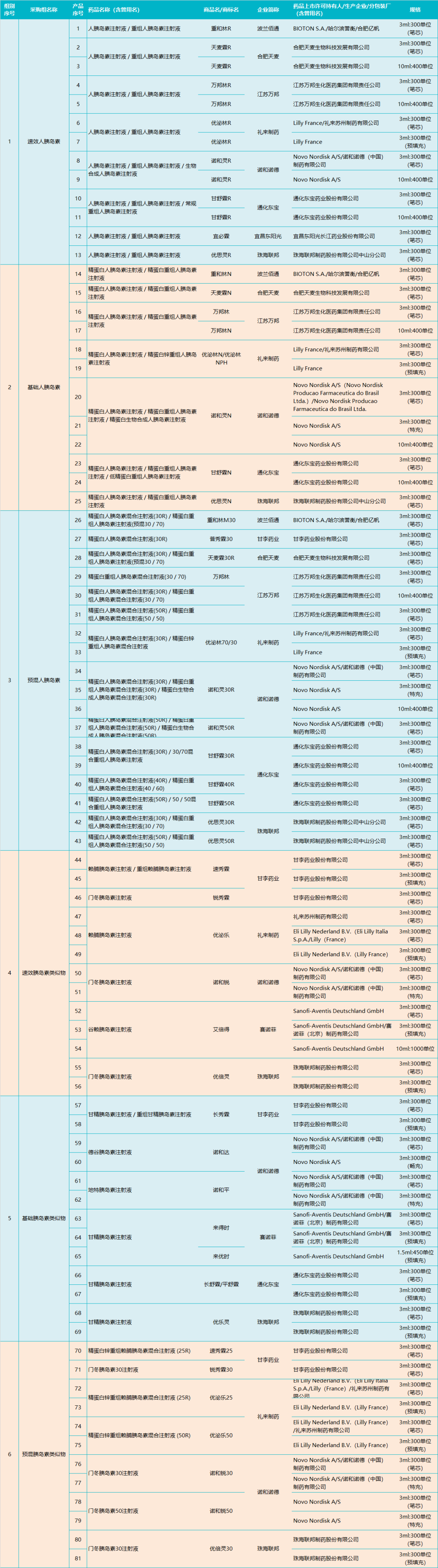 胰岛素集采产品清单(9 月 10 日公示版本)
