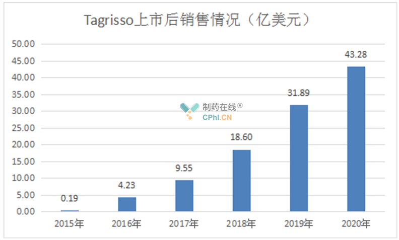 在国内,奥希替尼最早于2017年3月被NMPA批准用于既往经EGFR-TKIs治疗时或治疗后出现疾病进展,且经检测确认存在EGFR T790M突变阳性的局部晚期或转移性NSCLC成人患者,商品名为泰瑞沙,2018年被纳入国家医保。2019年9月,该药又被NMPA批准用于一线治疗EGFR突变阳性局部晚期或转移性NSCLC成人患者。2020年12月,泰瑞沙一线治疗NSCLC的适应症被纳入国家医保,二线治疗NSCLC适应症成功续约,成为唯一一款一线治疗NSCLC适应症进入医保的第三代EGFR-TKI。
