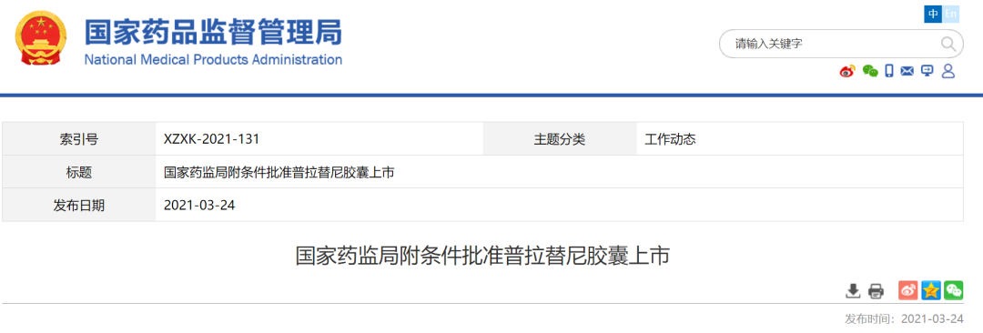 3月24日,国家药监局网讯国家药监局附条件批准普拉替尼胶囊上市。