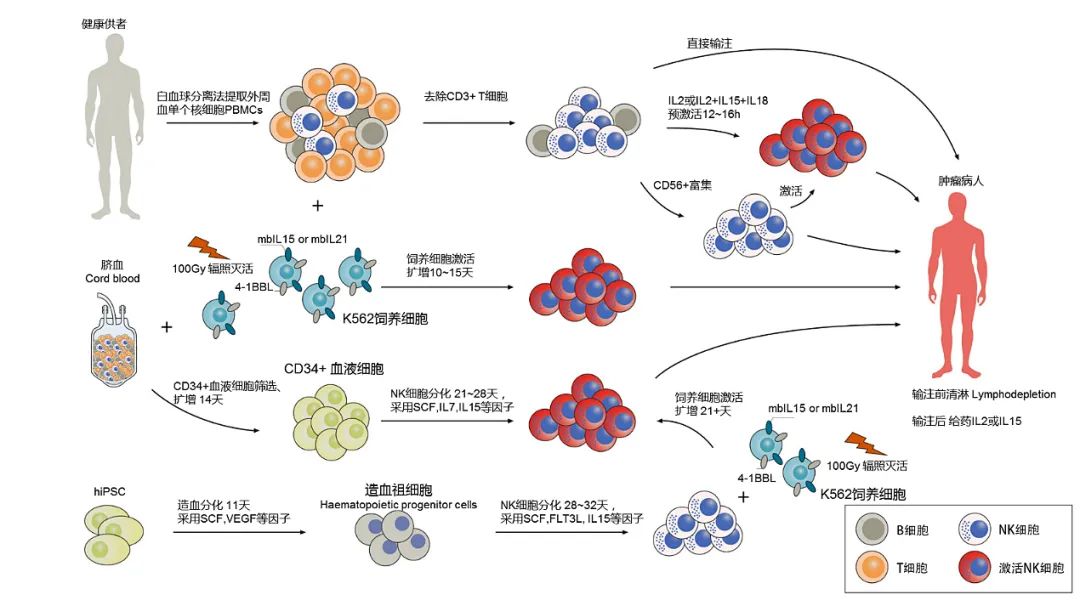 ▲ 不同来源的NK细胞产品生产策略 图源:参考资料3
