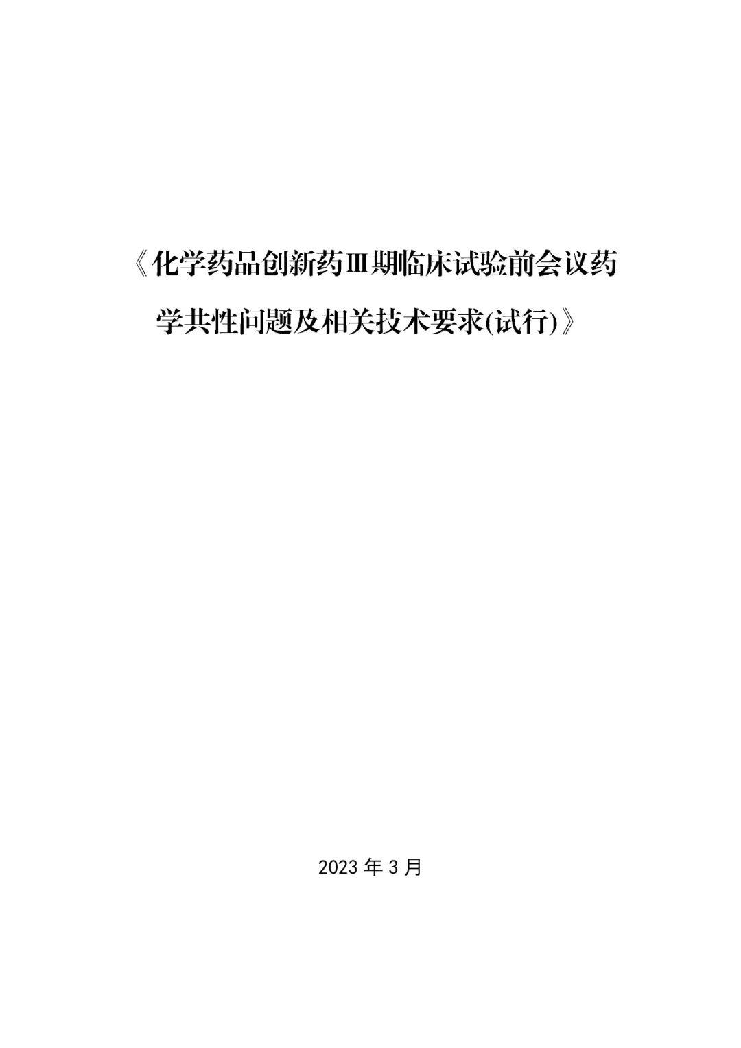 为鼓励创新,加快新药研发,提高申请人和监管机构沟通交流的质量和效率,在国家药品监督管理局的部署下,药审中心组织制定了《化学药品创新药Ⅲ期临床试验前会议药学共性问题及相关技术要求(试行)》(见附件)。