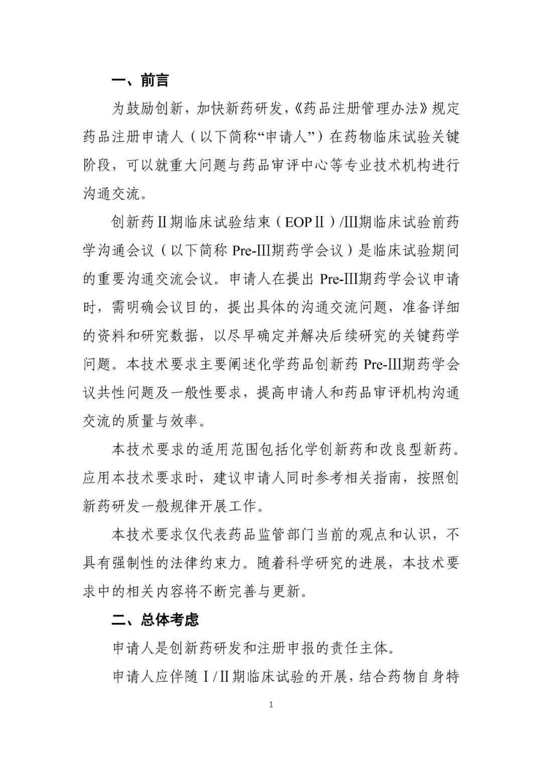 附件:化学药品创新药Ⅲ期临床试验前会议药学共性问题及相关技术要求(试行)