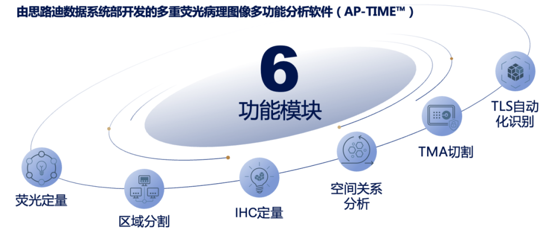 此外,病理图像中有效信息的挖掘与分析高度依赖于分析软件。思路迪自主研发的多重荧光病理图像多功能分析软件(AP-TIME™),可以为药企转化医学的个性化分析需求提供分析。
