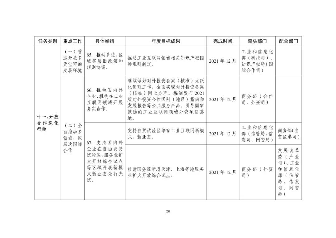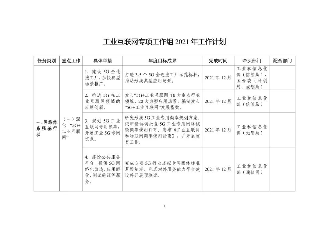 关于印发《工业互联网专项工作组2021年工作计划》的通知