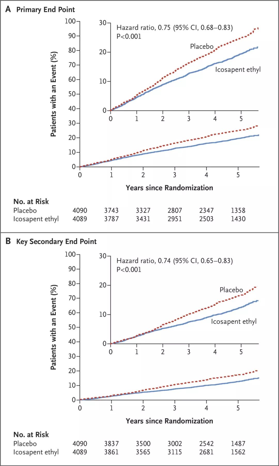 发表于《新英格兰医学杂志》的大型循证医学REDUCE-IT研究奠定了唯思沛®的重磅地位,研究PI哈佛大学DeepakL. Bhatt教授表示:“他汀类药物问世近30年以来,心血管疾病预防领域没有发生过如此重大的变化”。数据显示,对于接受他汀类药物充分治疗合并甘油三酯水平升高的成人患者,接受唯思沛®(2g,每日2次)治疗后主要复合终点事件(5P MACE)包括心血管死亡、非致死性心肌梗死、非致死性卒中、冠脉血运重建和不稳定心绞痛的发生率较较对照组降低了25%(17.2% vs 22%,HR0.75,95%CI: 0.68-0.83,P=0.00000001)。并且,所有亚组包括PCI、ACS、MI、Renal、糖尿病、EPA、PAD等患者人群的获益与主要终点结果具有一致性,二级预防和高危一级预防人群中的获益也是一致的。