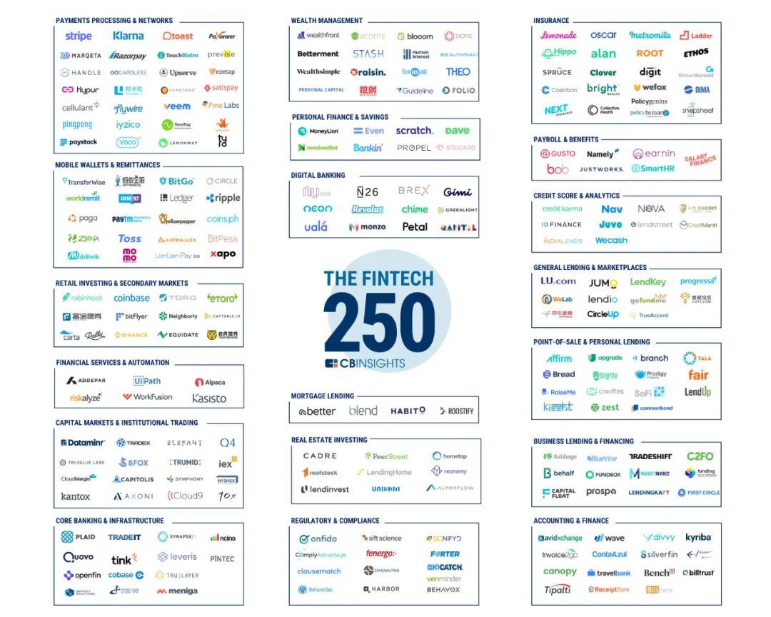 2020 年 9 月,CB Insights 发布了 2020 年度金融科技 250 强榜单,从