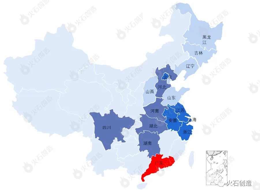 图2:我国机器视觉产业链中上游制造业区域热力图