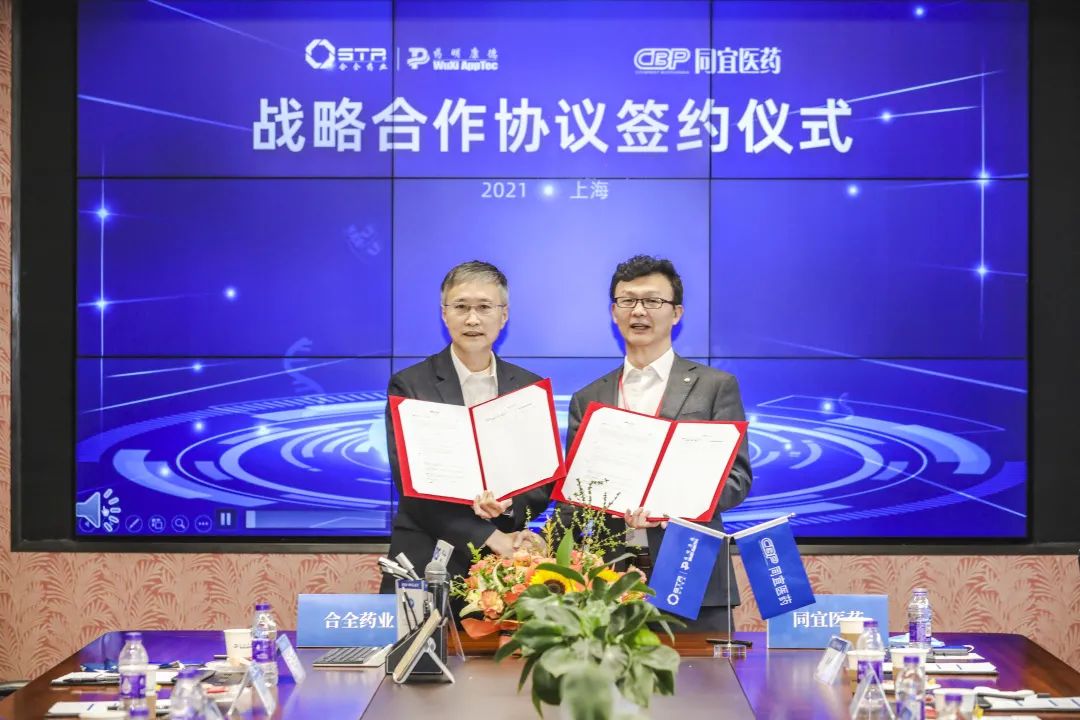 近日,药明康德子公司合全药业与创新型医药研发公司同宜医药达成战略合作,携手加快同宜医药在研及后续靶向肿瘤药物的研发进程,惠及广大病患。同宜医药董事长兼总经理黄保华博士及药明康德WuXi Chemistry首席技术官、合全药业原料药业务负责人傅小勇博士等出席了签约仪式。