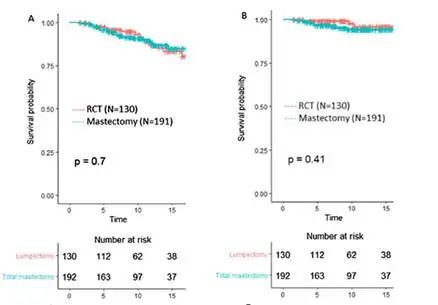研究分析了MSKCC单中心1986~2018年进行BCT乳腺浸润癌或导管原位癌的患者,IBTR作为首发事件,比较RCT与乳房切除后续事件和生存。