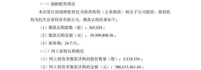2、网上投资者缴款认购的金额: 586,015,461.64元