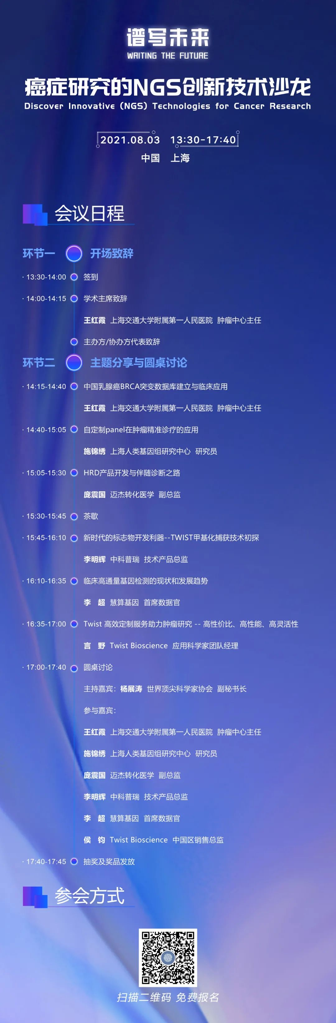 谱写未来—癌症研究的NGS创新技术沙龙将于8月3日在上海国际医学园区举办,现场手机扫码签到,请务必于签到时间内签到,领取参会证、会议资料、参会礼品和抽奖券!