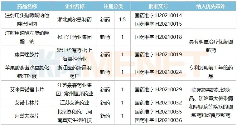表1:2021年至今获批上市的全身用抗感染药物1类新药(按批文日期统计)