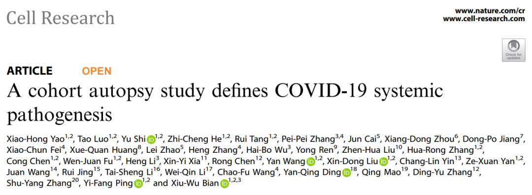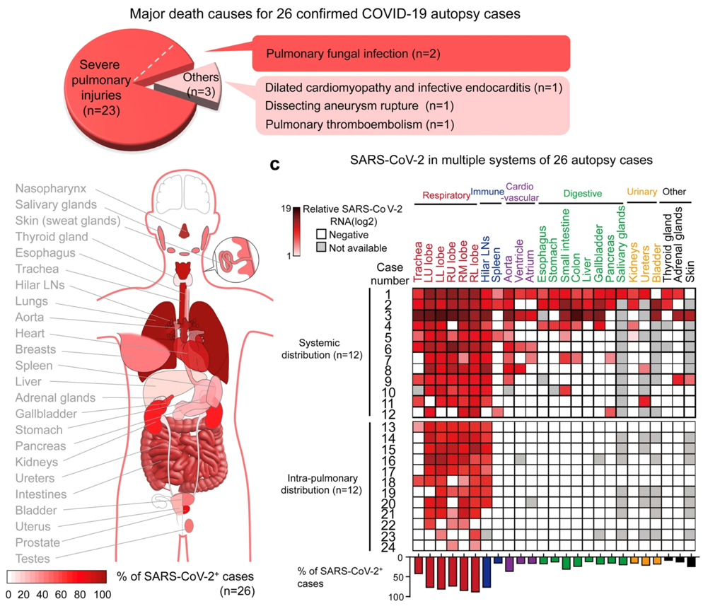 这项研究描绘了新冠病毒感染的全身病理特征,为新冠肺炎治疗的发展和感染机制认知提供了参考。