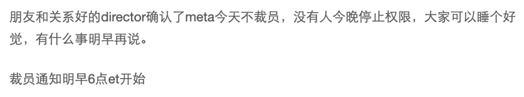 会议结束后,Meta许多部门的主管开始通知下属即将裁员的消息,一时人心惶惶。