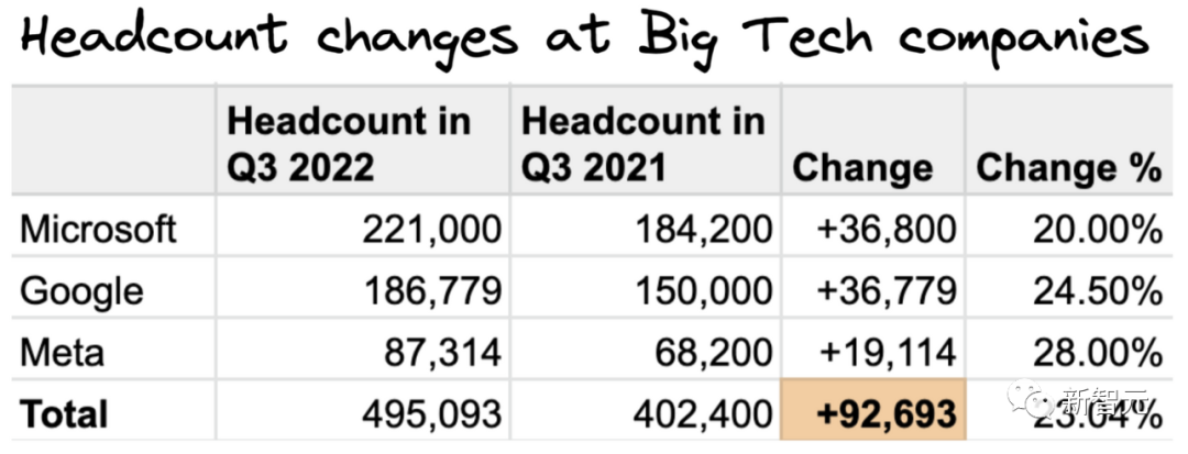 另有统计称,在过去的12个月里,仅微软、谷歌和Meta这三家科技巨头就招了9.2万名员工。