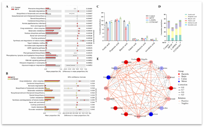 B. breve CCFM1067治疗对MPTP诱导的PD小鼠肠道微生物功能的影响,可能是通过微生物代谢产物介导的