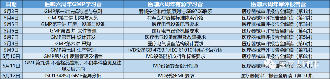 医疗器械质量法规比较枯燥,普通人学习常常不知如何入门且很难坚持。我们为此开设了医咖网上课堂和在线打卡学习营,帮助大家一起学习,同学同乐同成长!