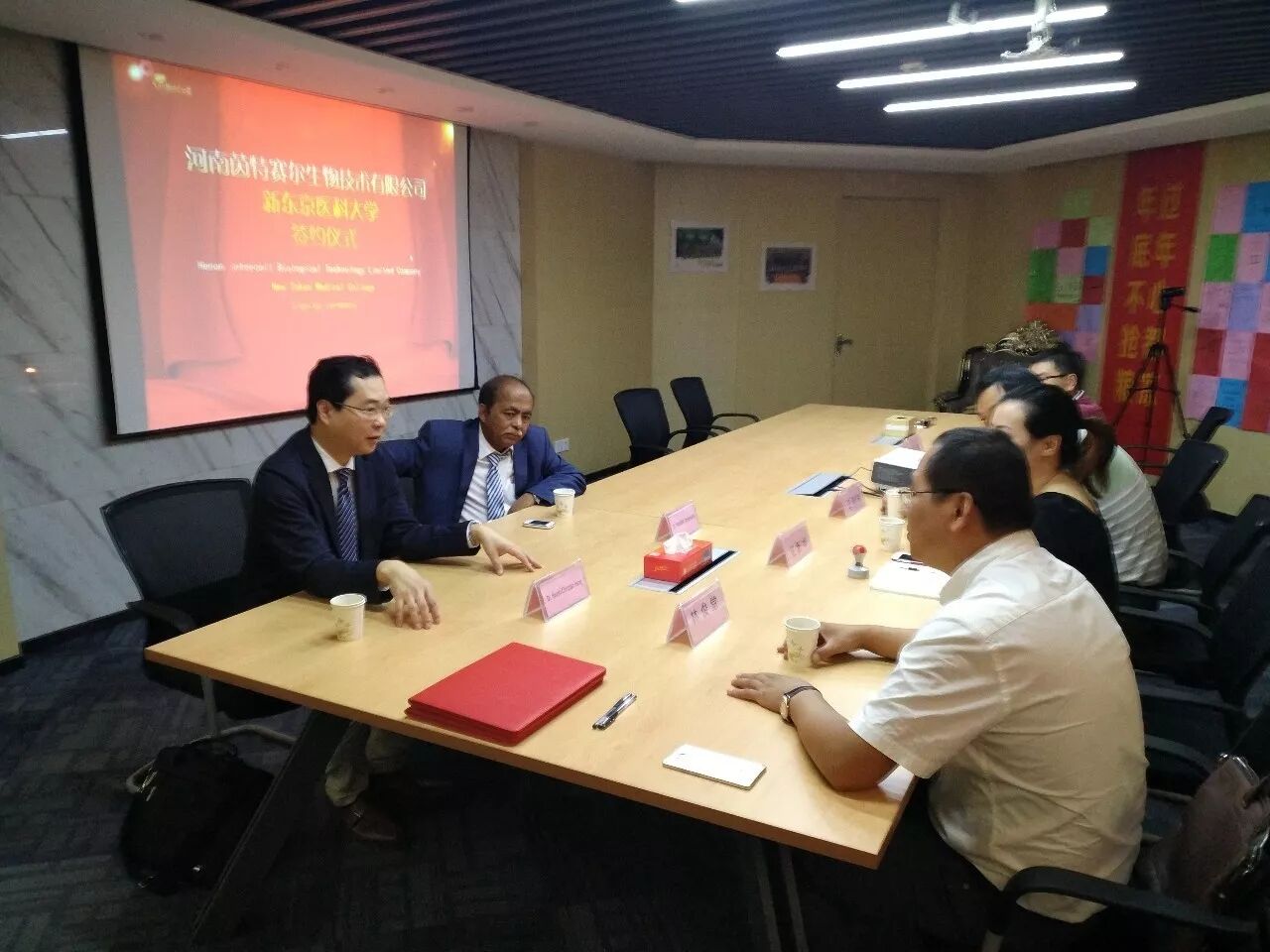 9月22日,密克罗尼西亚新东京医学院院长Dr. Hyunki Christian Hong、副院长Dr. PRAMANIK Drjogenand一行到河南茵特赛尔生物技术有限公司进行访问与交流。公司总经理任新华在会议室进行了接待,公司技术总监付康,特聘专家林俊堂、王现伟等人陪同接待。
