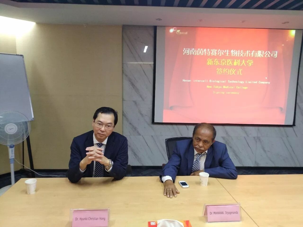 会谈期间,总经理任新华首先代表公司对Hyunki Christian Hong与PRAMANIK Drjogenand博士一行的到访表示欢迎,然后详细介绍了公司与干细胞研究、在建项目整体开展情况,她表示公司愿意在技术、教育、医疗和项目投资等领域与新东京大学加强交流与合作,为共同开展国际医疗与大健康管理事业做出贡献。Hyunki Christian Hong博士肯定了公司的发展,对公司项目表示赞赏与认可,随后,他介绍了新东京医学院与密克罗尼西亚医疗投资环境与情况,双方就生物技术研究、基础医疗设施投资、拟国际合作健康管理产业链项目等内容进行深入探讨并达成共识,最后签订河南茵特赛尔生物技术有限公司与密克罗尼西亚新东京医学院战略合作谅解备忘录。会谈结束后,Hyunki Christian Hong与PRAMANIK Drjogenand博士到茵特赛尔公司下属的国家新乡经济技术开发区公司在建项目施工现场进行实地参观。