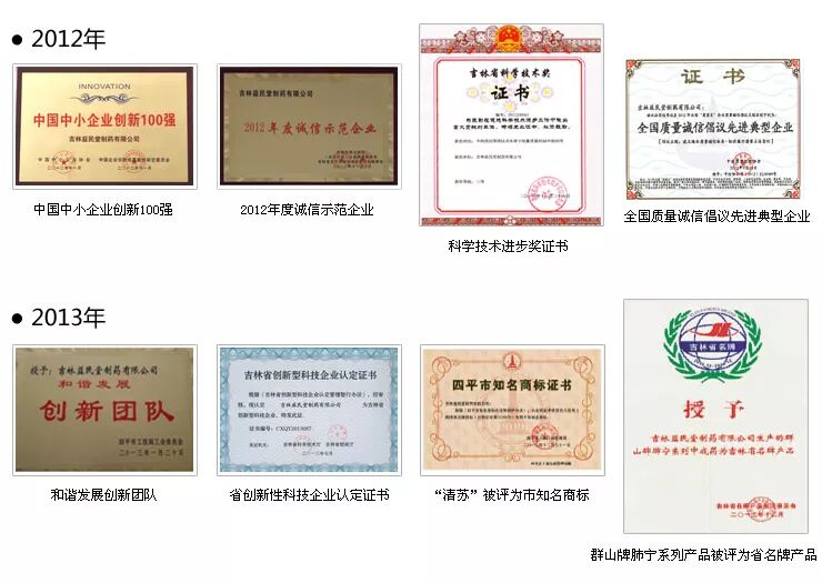 益民堂力求通过不断完善的自主研发体系和逐渐壮大的科研队伍,与市场上建立起来的良好口碑一起构成公司腾飞的双翼。多年来,公司先后荣获“中国中小企业创新100强”、“吉林省百强民营企业”、“吉林省质量诚信企业”、“全国质量诚信倡议先进典型企业”及“吉林省守合同重信用AAA级企业”等荣誉称号,公司以卓越的品质、良好的