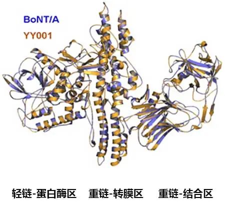 ▲YY001与天然A型肉毒毒素分子立体结构的同源模拟分析