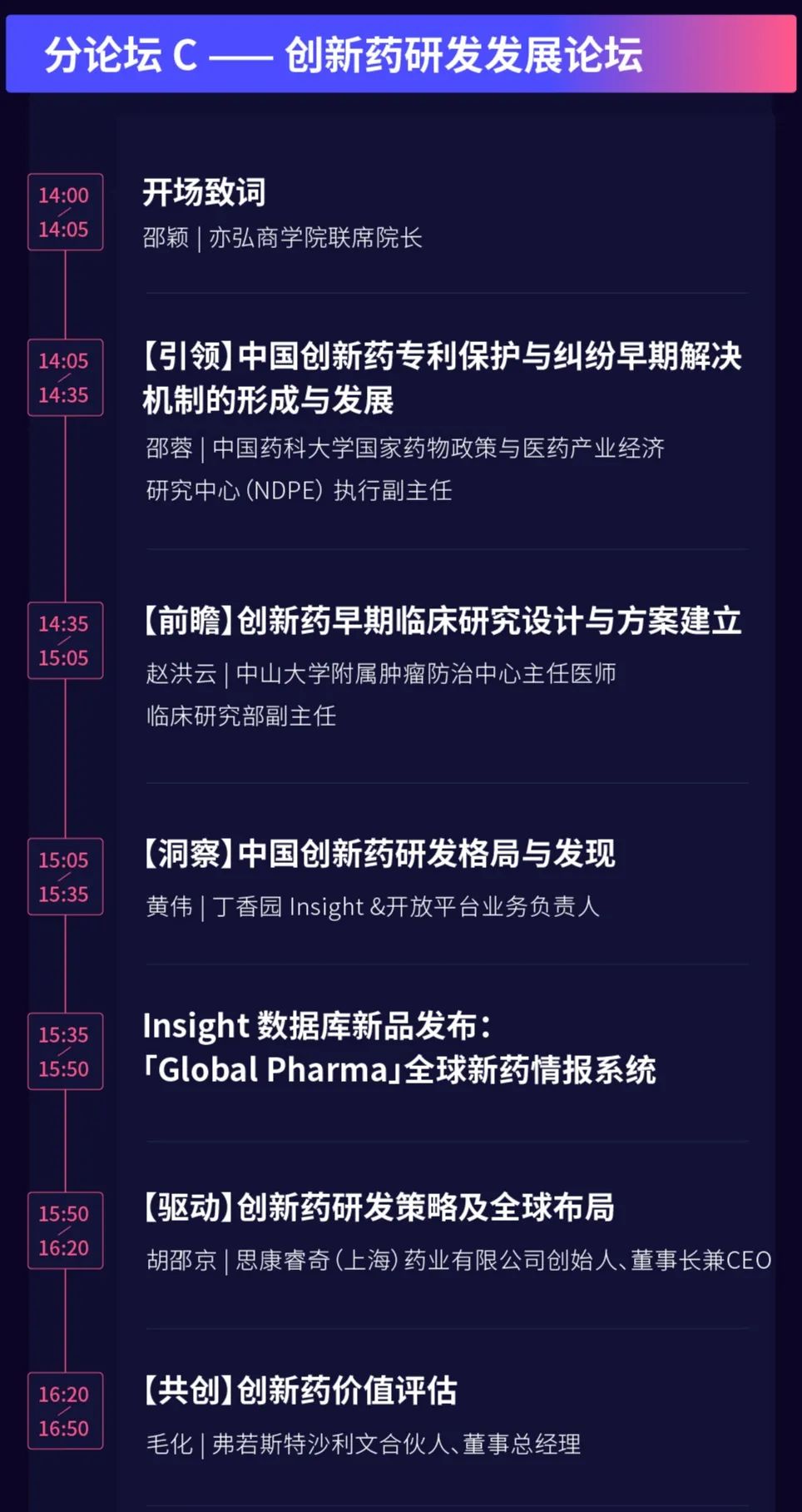 论坛邀约政府、高校、医院、企业、咨询、数据领域六位大咖,深度剖析专利保护、早期临床、研发格局、研发策略、价值评估等创新药难点、痛点,探索中国创新药研发新路径。