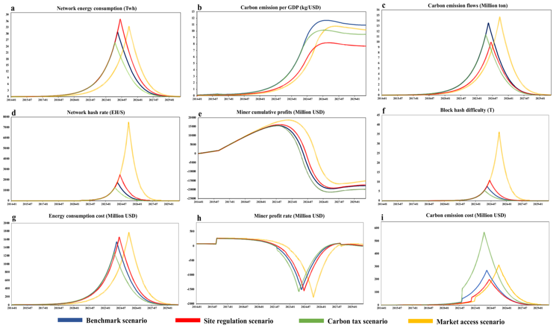 BBCE情景评估比较。整个样本网络碳排放评估的时间跨度为2014年1月至2030年1月。
