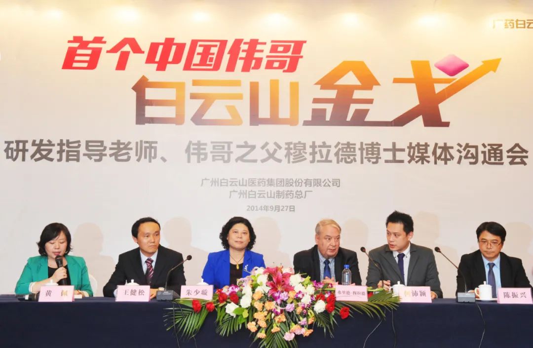 2014年,诺贝尔生理医学奖得主、“伟哥之父”穆拉德博士出席广药白云山金戈媒体沟通会