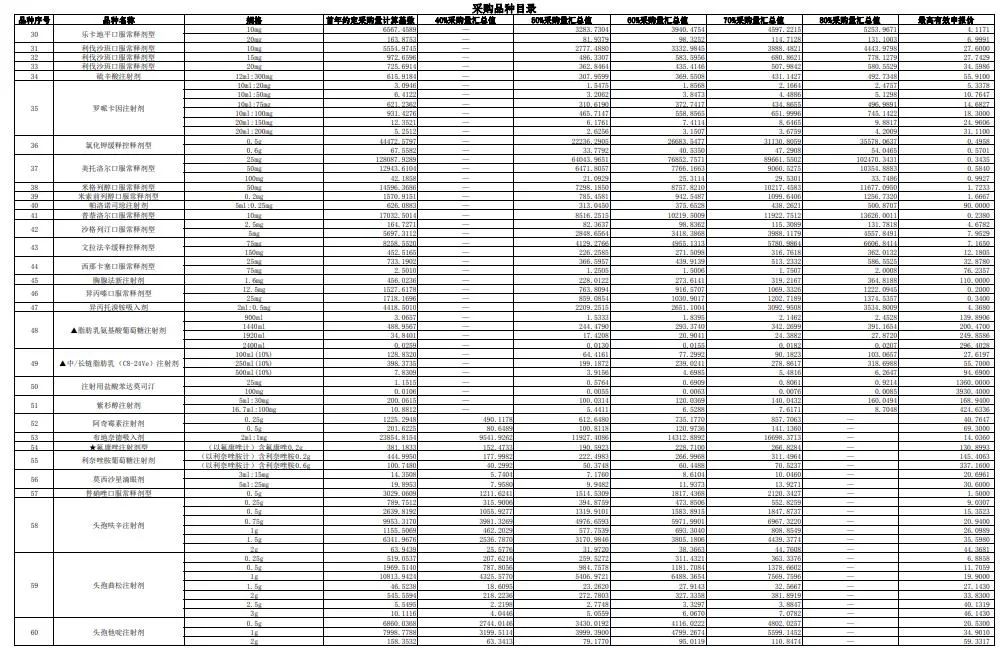 附采购品种目录: