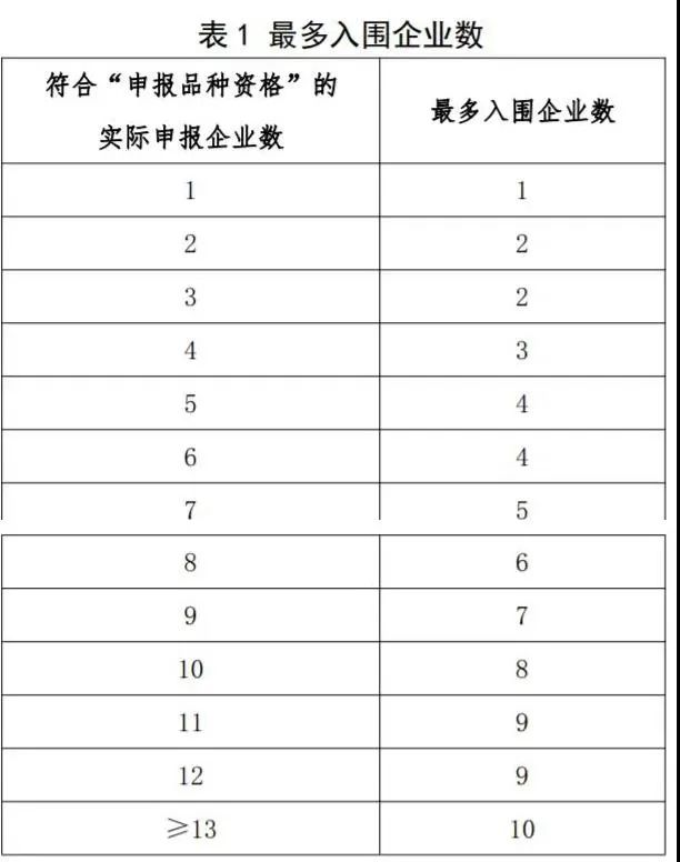 在中标规则方面,由于部分大品种企业较多,竞争激烈,因此,《公告》明确采购品种目录中同品种最多入围企业数根据符合“申报品种资格”的实际申报企业数确定,最多入围企业数可以达10家。