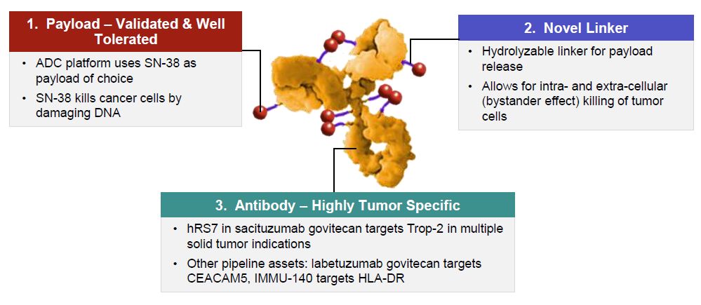 Trodelvy是一款靶向Trop-2-ADC药物,利用人源化抗体hRS7作为靶向载体与伊立替康活性代谢产物SN38偶联而成。