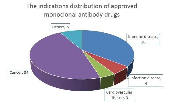 mAbs药物开发基于对特定疾病发病机制的了解,对特定蛋白和分子在致病过程中的作用方式明确,如果符合上述2点,那么mAbs药物将成为很好的治疗选择。mAbs药物开发的方向除了新的产品以外,还包括对已有药品新适应症的开发。