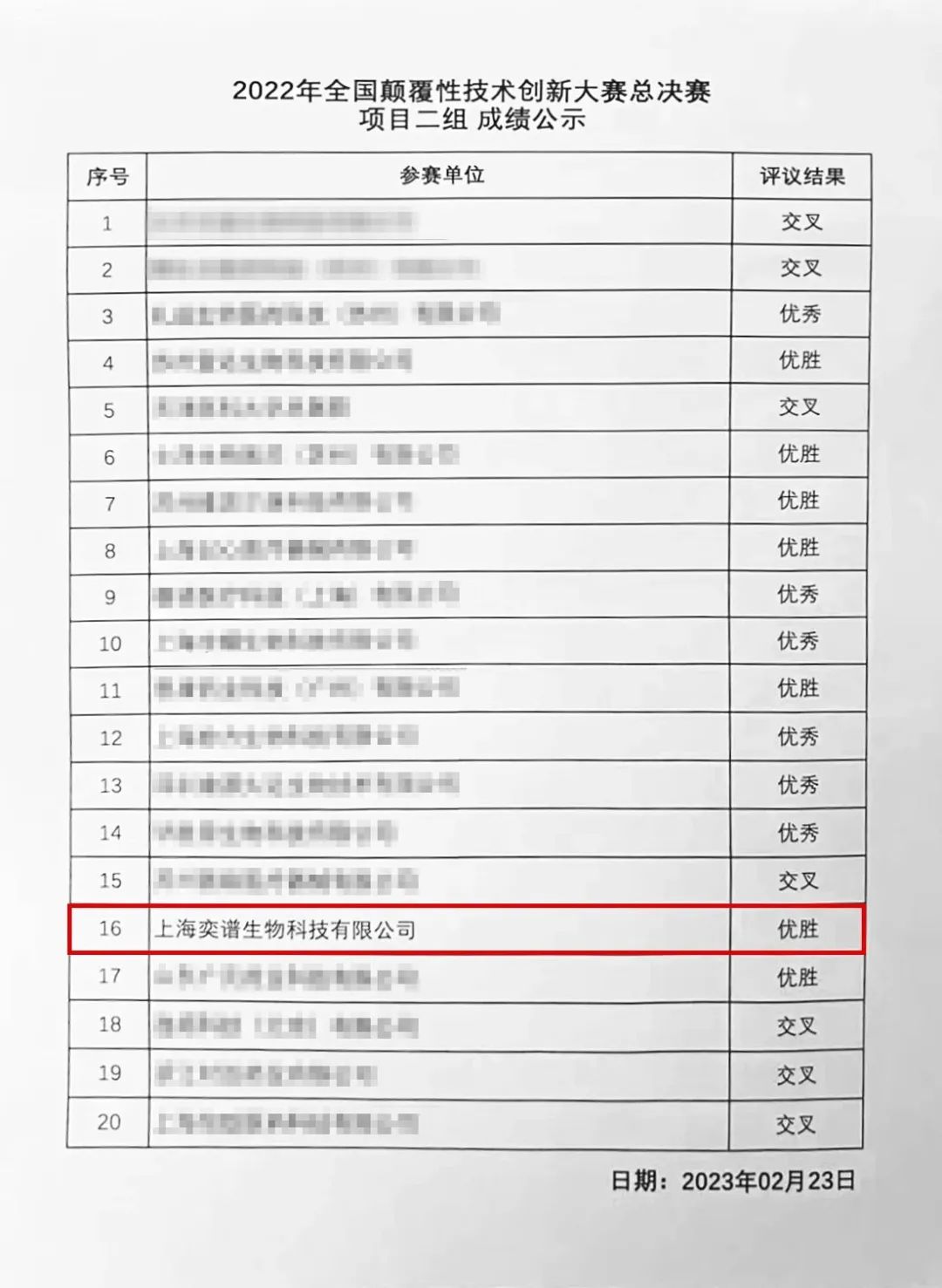 奕谱生物获全国颠覆性技术创新大赛总决赛最高奖,IVD领域唯一优胜企业