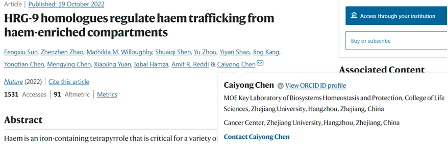 Fengxiu Sun et al. HRG-9 homologues regulate haem trafficking from haem-enriched compartments. Nature, 2022, doi:10.1038/s41586-022-05347-z.