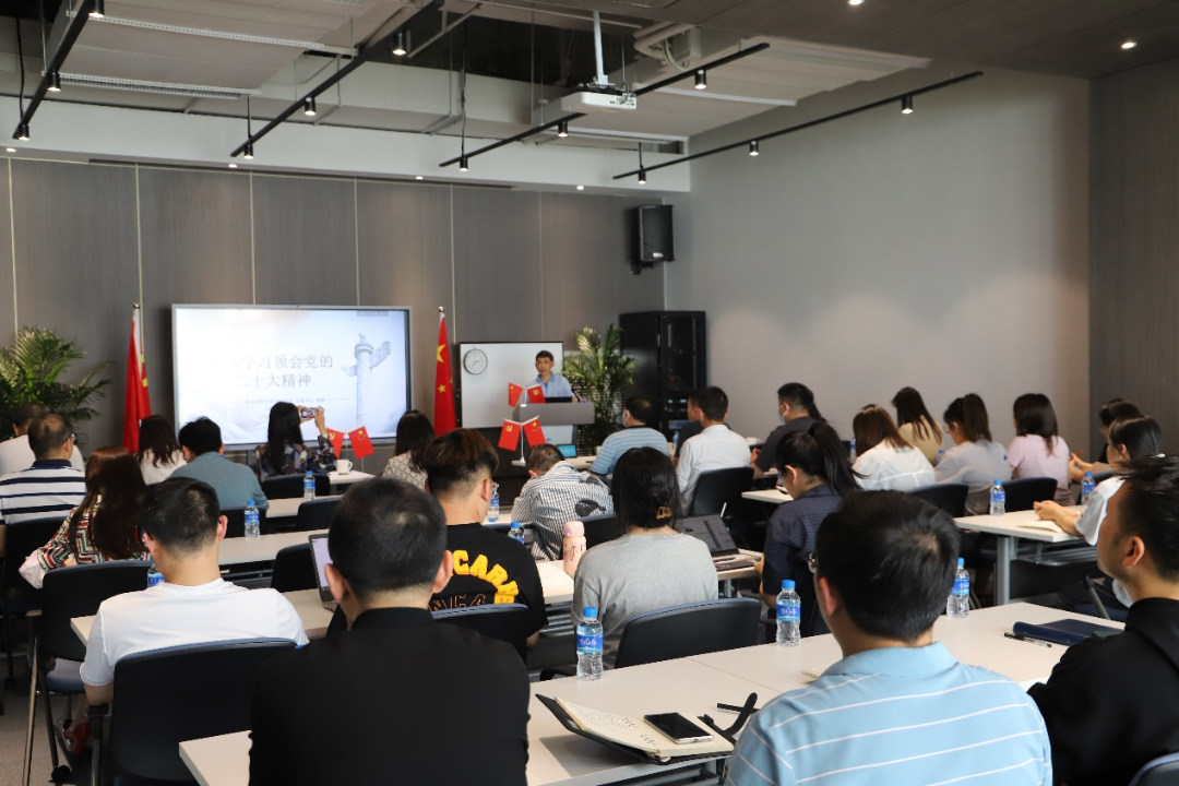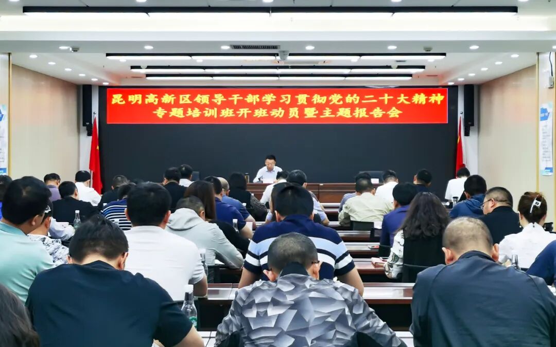 高新区商促部党支部书记从学习领会党的二十大重大意义、党的二十大主题、深入学习领会习近平新时代中国特色社会主义思想的世界观和方法论等方面进行讲解,介绍了近年来高新区取得的成绩及高新区加快建设面向南亚东南亚创新型特色园区的目标和措施,激励在座全体党员把力量凝聚到党的二十大确定的各项任务上来,在新征程的战鼓声中奋勇向前。