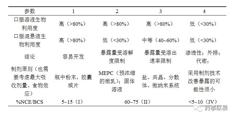 一个简单的方式是根据药理剂量下NCE的溶液和混悬液的药代动力学比较作为选择临床制剂的指导工具(表3)。