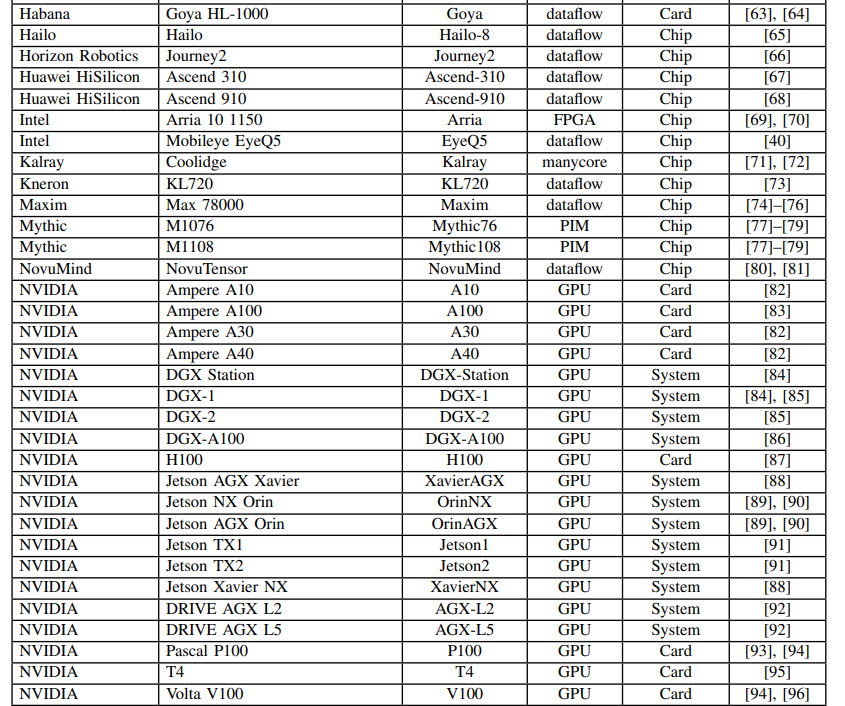 例如,这项多年调查的第一篇论文包括某些AI模型的FPGA的峰值性能;然而,上述的一些调查深入地涵盖了FPGA,因此它们不再包括在本次综述中。