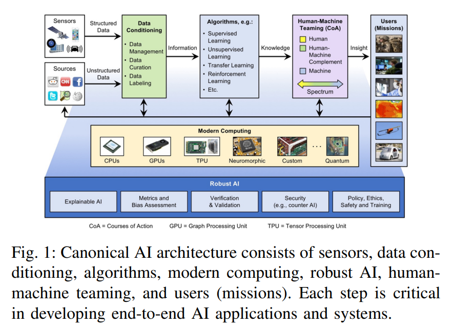 AI生态系统将嵌入式计算(边缘计算)、传统高性能计算(HPC)和高性能数据分析(HPDA)的组件聚集在一起,这些组件必须一起工作,有效地为决策者、作战人员和分析人员提供使用的能力。