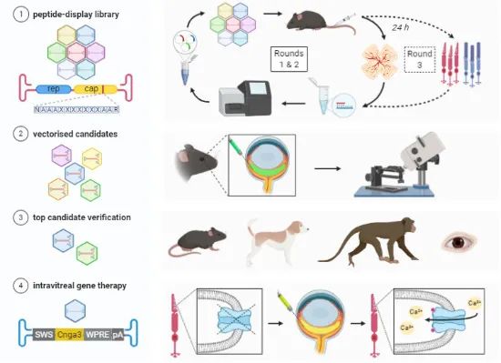 因此,需要开发出更好的适用于眼病基因治疗的病毒载体,可以通过微创给药就能更有效靶向视网膜感光细胞,以更安全更高效地治疗遗传性失明。