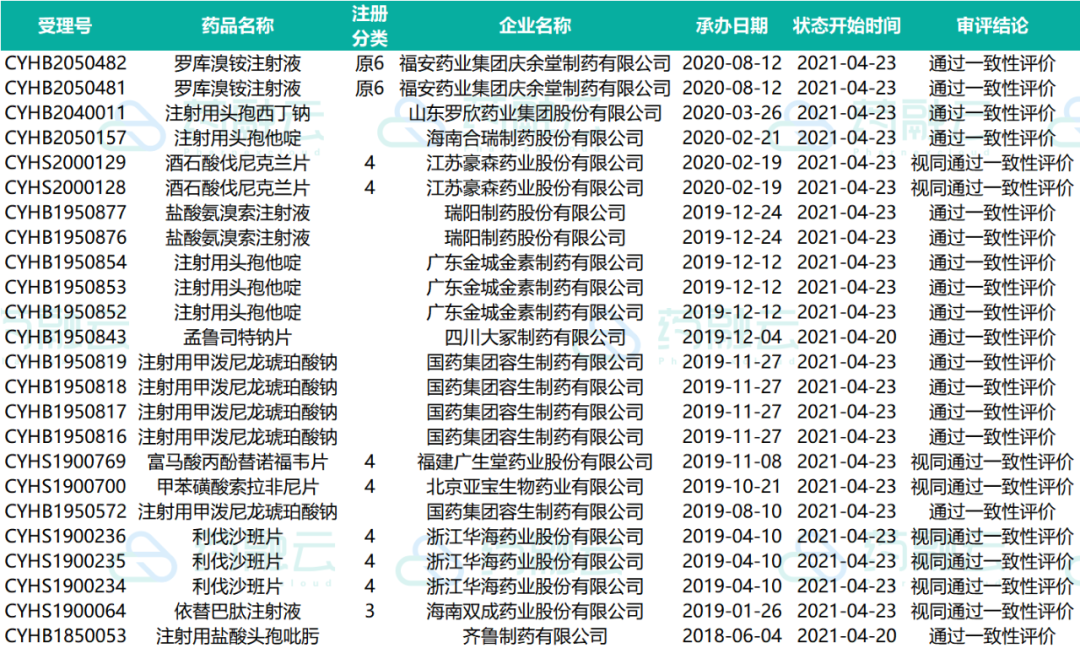 - 新增11个按仿制药质量和疗效一致性评价品种申报的受理号。