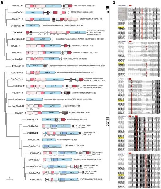 额外的III-E型家族成员和新颖的III-D2型位点结构和具有代表性的同源物的多重比对。图片来自Nature, 2021, doi:10.1038/s41586-021-03886-5。