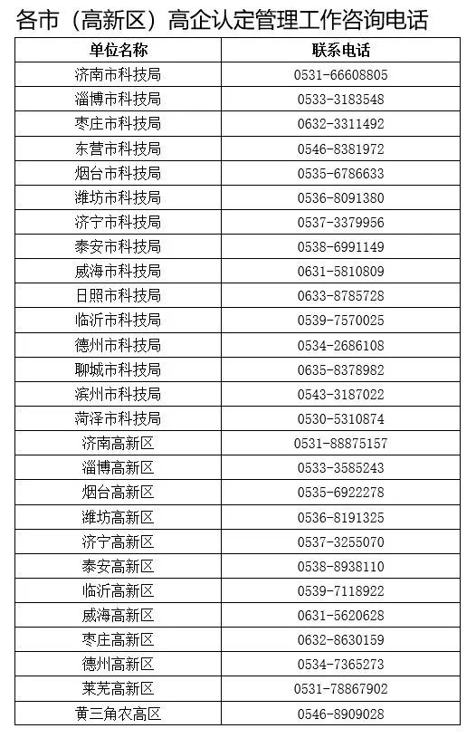 各市(高新区)高企认定管理工作咨询电话详见附件1。